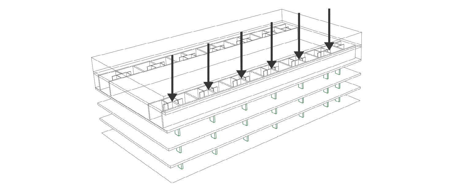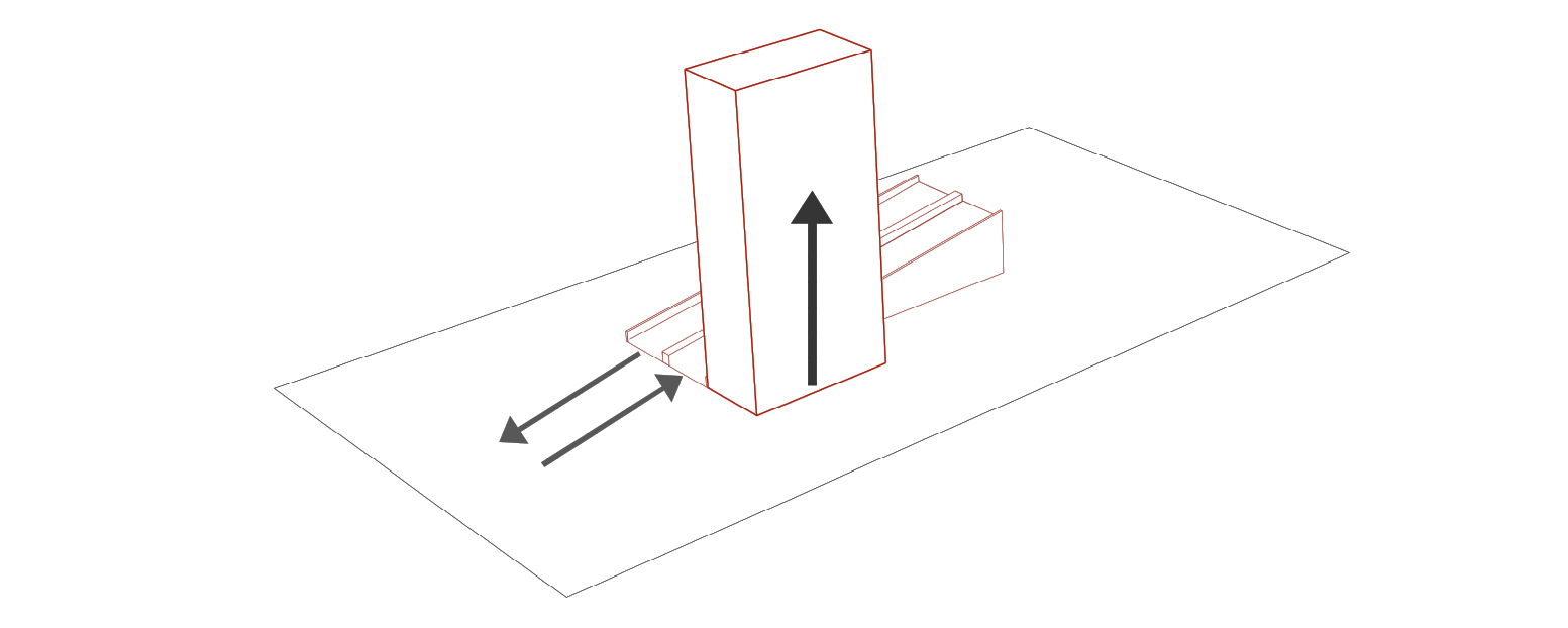 Um den Baukörper auch zukünftig nachhaltig zu nutzen, ist es so geplant, dass man ihn flexibel umbauen kann. Da wo zur Zeit Mobilität oder Arbeiten herrscht, kann in der Zukunft auch Wohnen stattfinden. Das generieren die senkrecht laufenden Installationsschächte, die sich durch das gebäude ziehen..